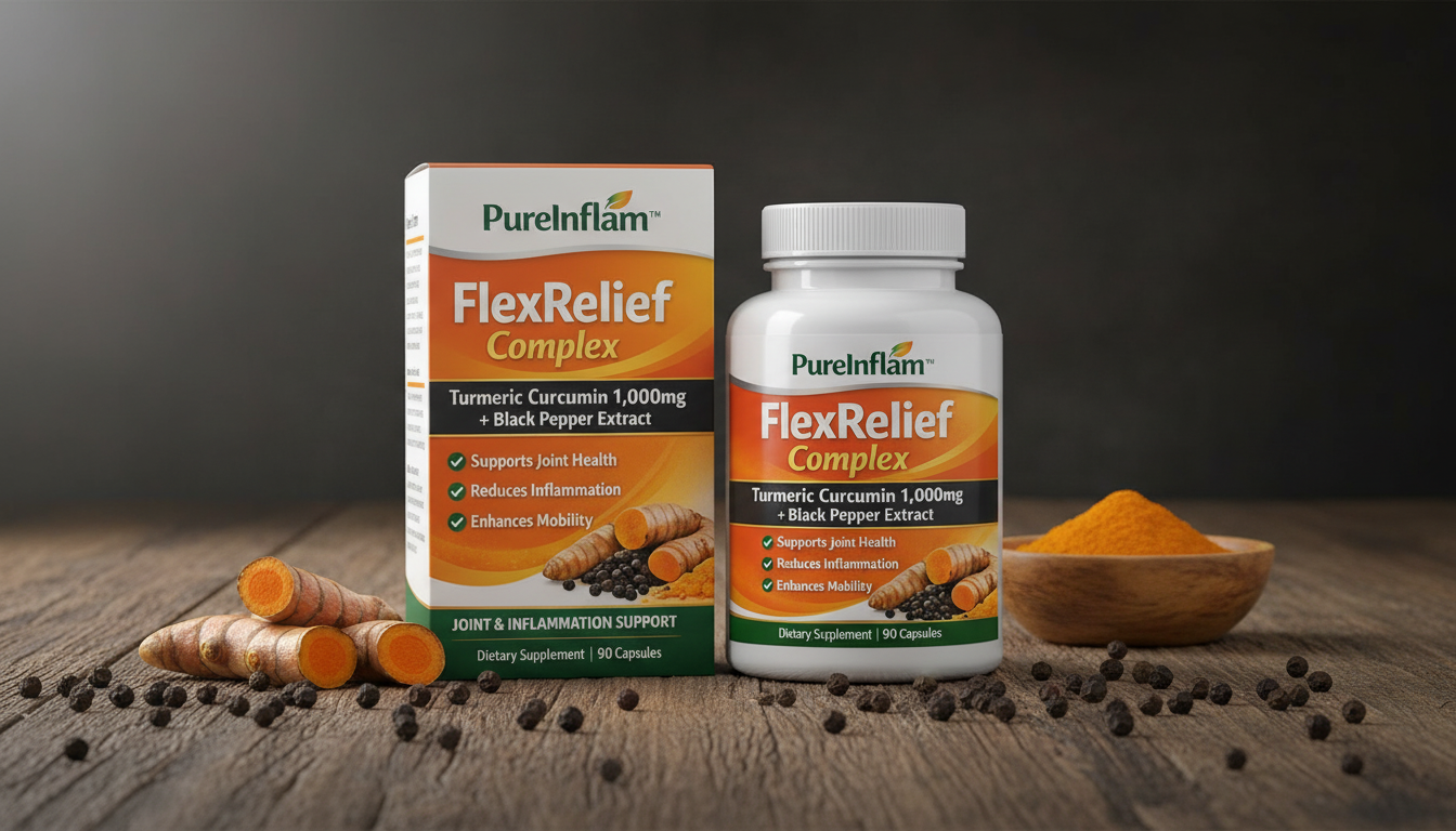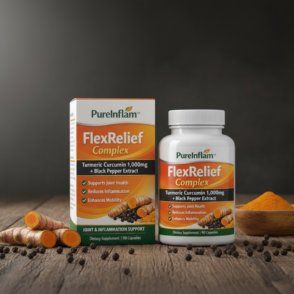 FlexRelief Complex uses a high-potency turmeric curcumin extract standardized to 95% curcuminoids, combined with black pepper extract (piperine) to help improve absorption.